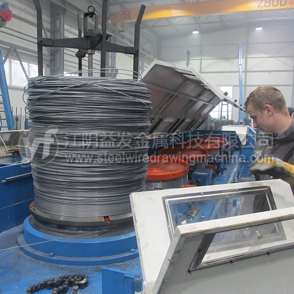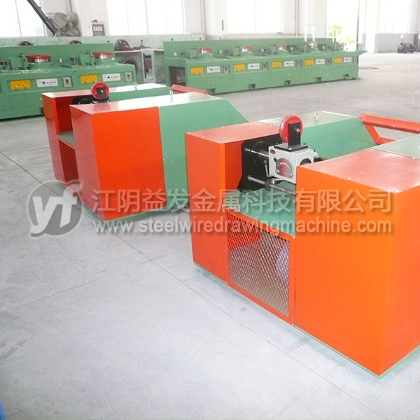 低速大盤重的收線機主傳動采用擺線針輪減速機和鏈條傳動形式;高速小盤重的工字輪收線機采用三角帶直接傳動;收線機內側兩邊大盤重采用三氣缸氣動*裝置小盤重采用兩個氣缸*,工字輪被氣動夾緊,外側都設計有機械鎖緊裝置,防止停電停氣時飛出機器;速度、張力控制一般由交流變頻電機調速,速度由拉絲機的PLC程序控制器調節匹配;排線采用大力矩絲桿排線器,維修簡單、實用,但是不能調節排距;如果采用光桿排線器可以隨時隨地調節排距;收線機通常必須按照客戶提供的工字輪圖紙設計,收線重量30Kg~1000Kg;防護門采用時尚型的推拉門。